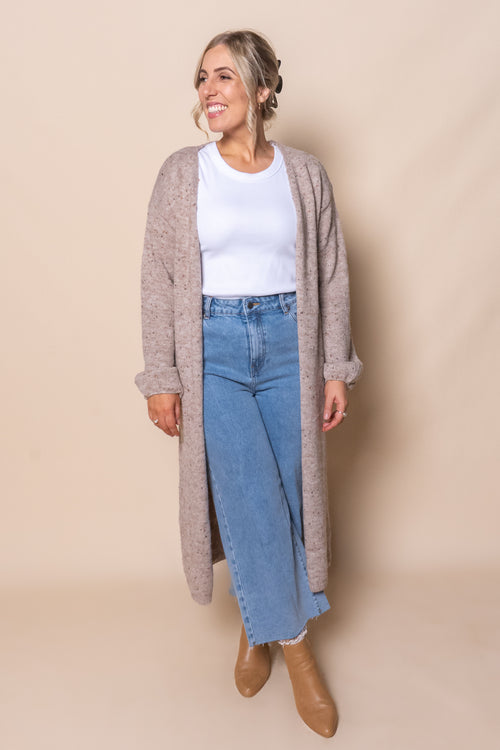 Khloe Speckled Knit Cardigan in Taupe
