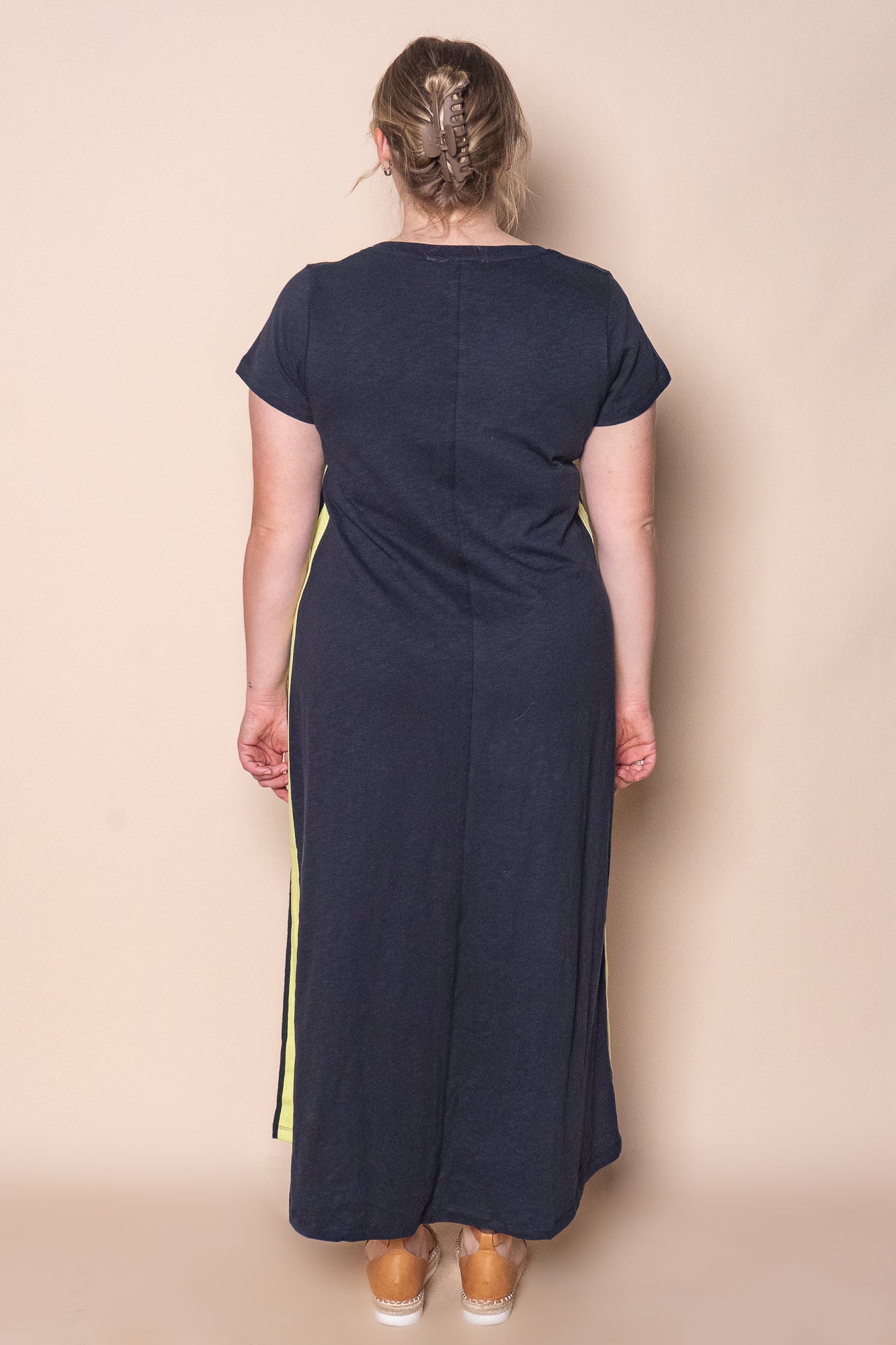 Stay stylish and comfy in the Recovery Dress in Navy and Neon Lemon by Foxwood. This playful midi-length dress features charming stripe details and handy pockets for all your little essentials. Made from soft cotton, it offers breathable comfort while the round neckline adds a simple, flattering touch. Perfect for days when you want to feel relaxed but put together effortlessly.