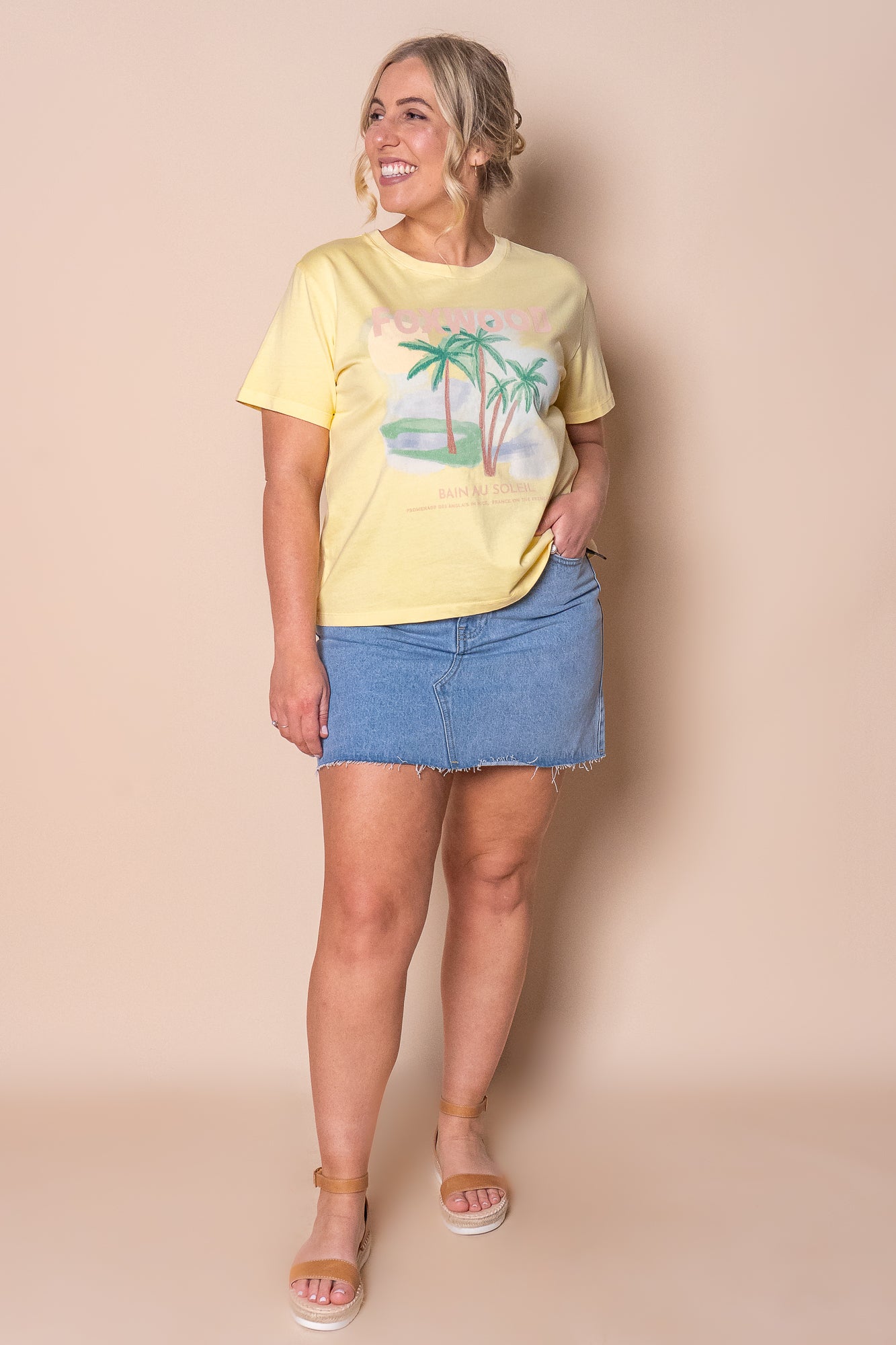 Brighten your wardrobe with the Sunny Days Tee in Lemon by Foxwood. Made from soft cotton, this tee features a fun graphic print on the front and a straight hemline for a relaxed, carefree fit. Perfect for adding a splash of sunshine to any outfit!
