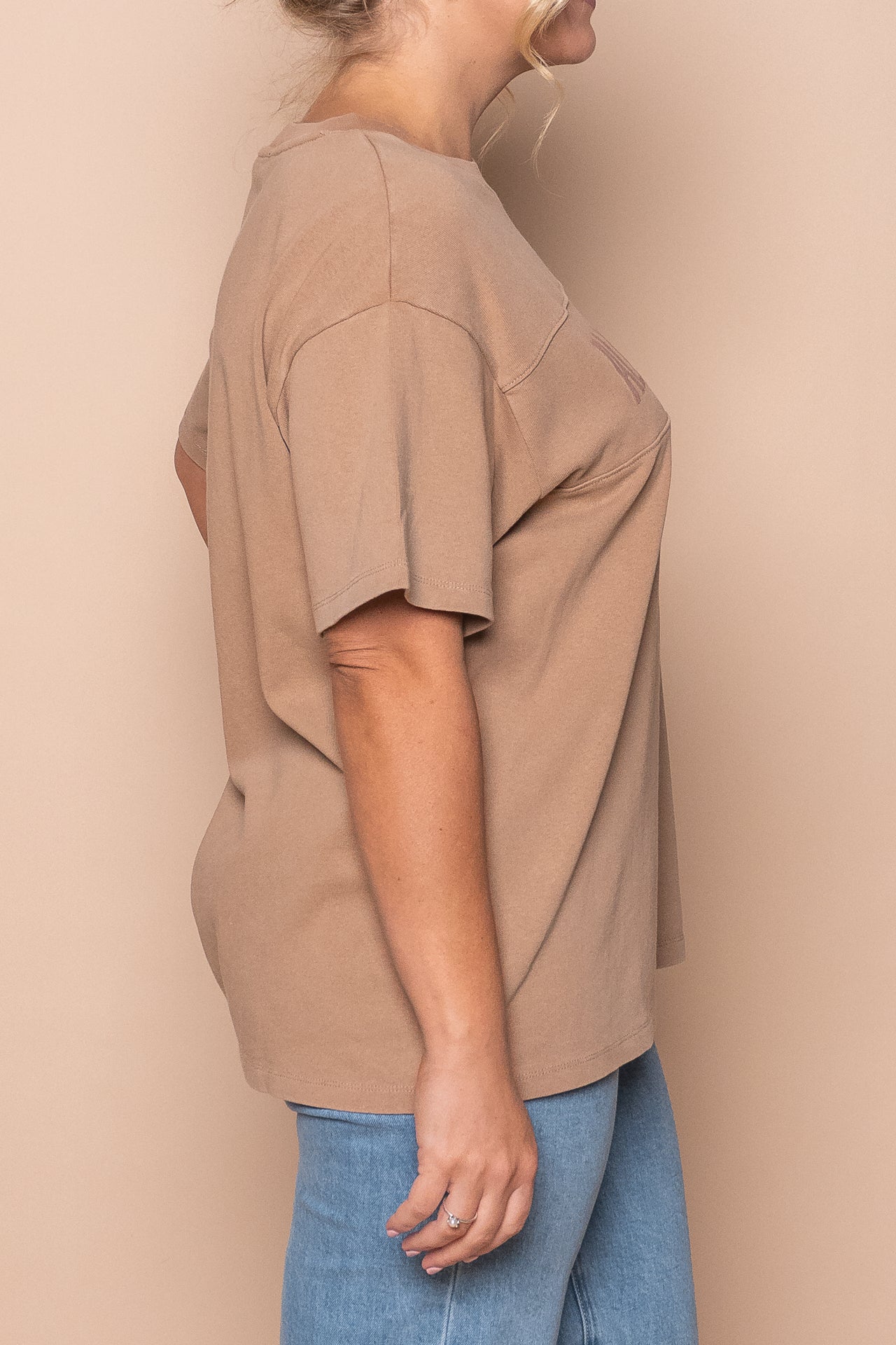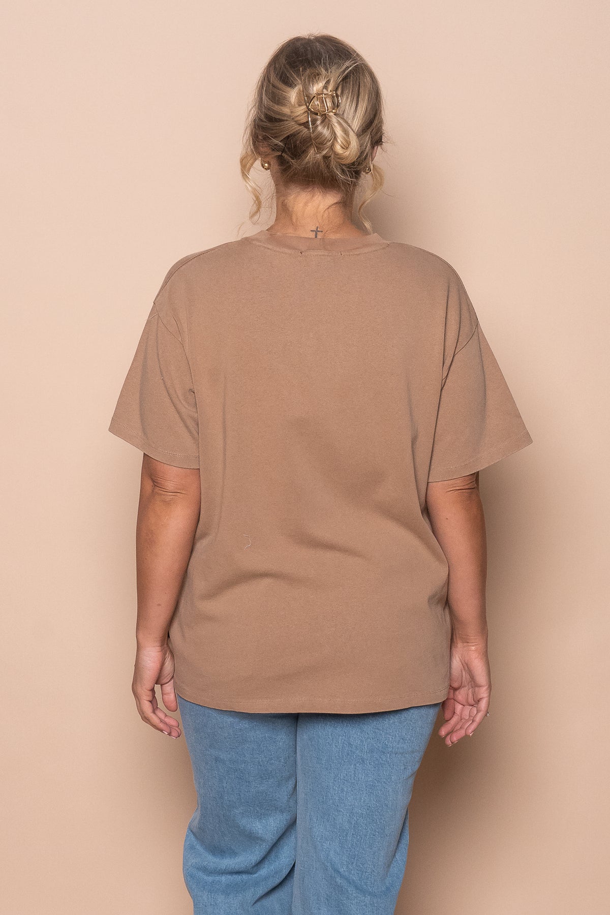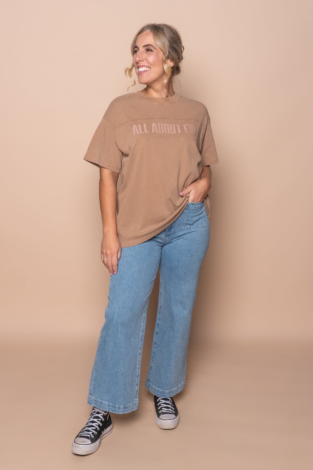 Introducing our Vital Washed Oversized Tee in Tan from All About Eve. Made from 100% cotton, this t-shirt boasts an oversized fit and round neckline for maximum comfort and style. Show off your love for All About Eve with the logo on the front. Perfect for a casual and laid-back look.
